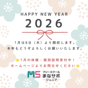 ●2026-01-07 | ニュース2026年もよろしくお願い… Home お知らせ一覧 お知らせ 2026年もよろしくお願いします🐎/… 2026年もよろしくお願いします🐎/1月の活動予定 \明けましておめでとうございます/ 今年も皆さんにとって安心して楽しく学べる場所でありたいと思います。 2026年もどうぞよろしくお願いいたします! フリースクールまなサポジュニア職員一同 👇1月の活動予定です! 「書初め」「凧あげ」「かるた大会」などお正月にちなんだ企画も盛りだくさん! 今月もみんなで楽しく過ごしましょう(*^^*) 体験・個別相談も随時受け付けています!(申込はHP内「お問合せ」よりお願いします!) ※活動内容は変更の可能性があります※ BACK一覧へ戻るNEXT